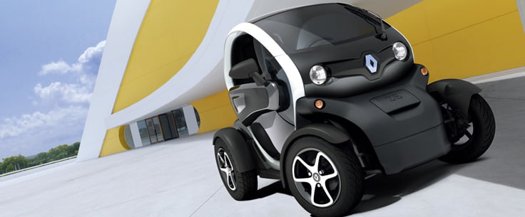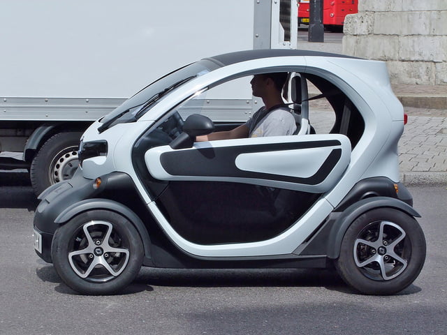 The Twizy is 2.32 meters long, carries two people, one behind the other, and has an electric motor with a rechargeable lithium battery. It weighs less than 450 kilograms. The basic model has a 5-horsepower engine and top speed of 45 kilometers an hour. In most European countries, people from the age of 16 can drive it without a driver’s license.