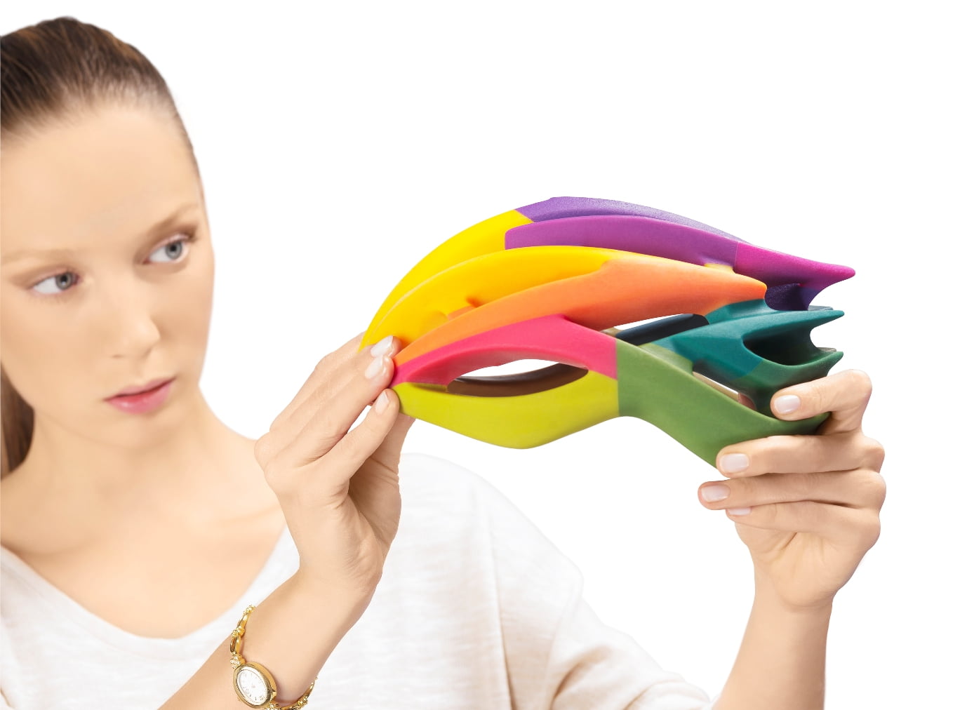 Not unlike an inkjet printer found in many homes (albeit a little more pricey), the new printer uses three base-colors to create all the different colors. According to the company, the three base-materials, VeroCyan, VeroMagenta and VeroYellow – are combined to produce hundreds of vivid colors.